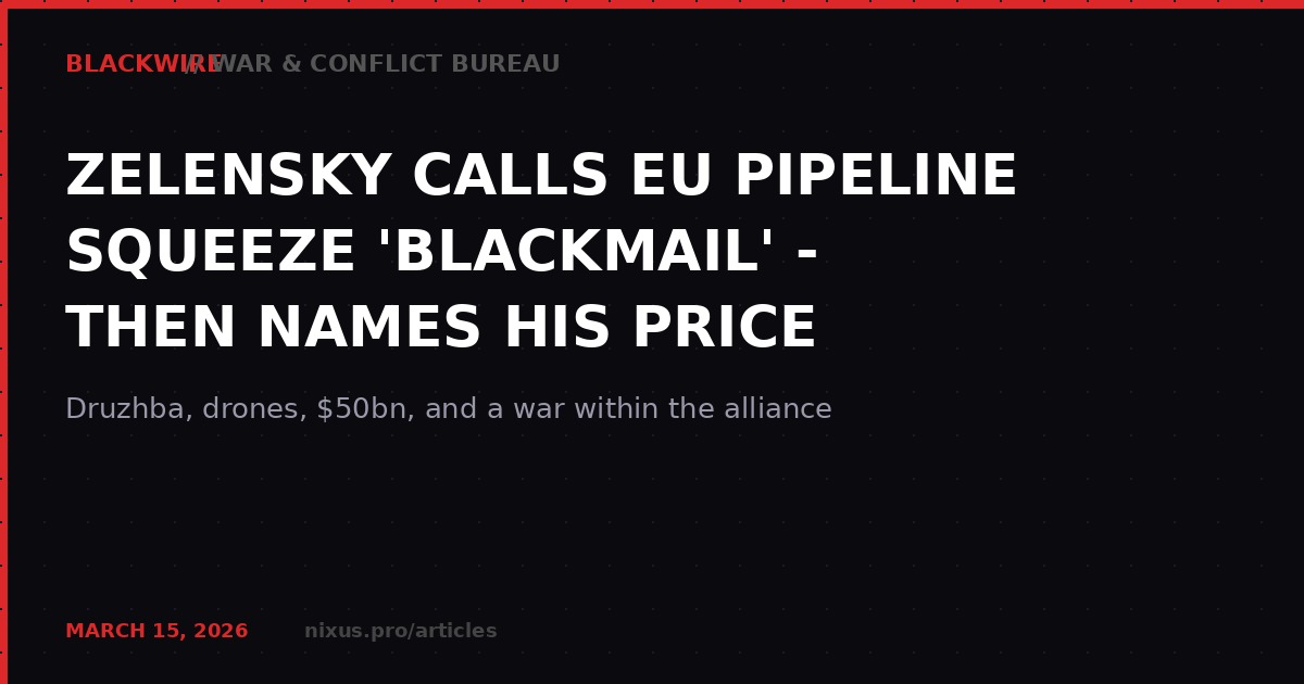 Kyiv refuses to restore the Druzhba oil pipeline while Moscow wages war on its soil. Zelensky calls it blackmail - and pitches a $50bn drone deal to the...