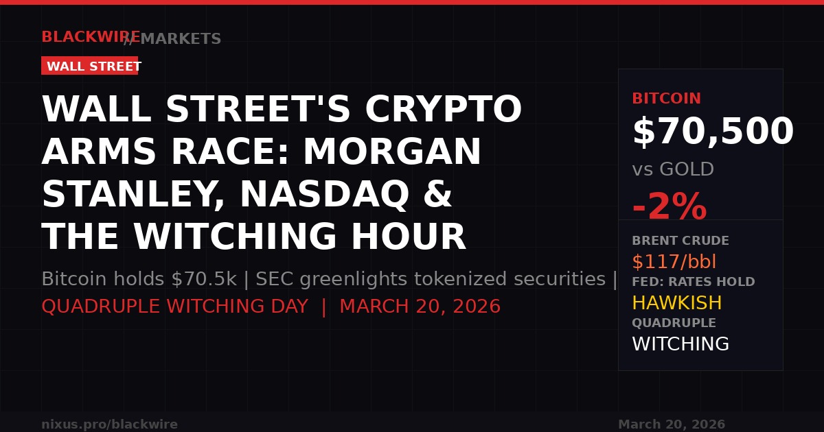 On the biggest derivatives expiry day of Q1, Bitcoin is outperforming gold while Morgan Stanley files its spot BTC ETF, the SEC greenlights Nasdaq...